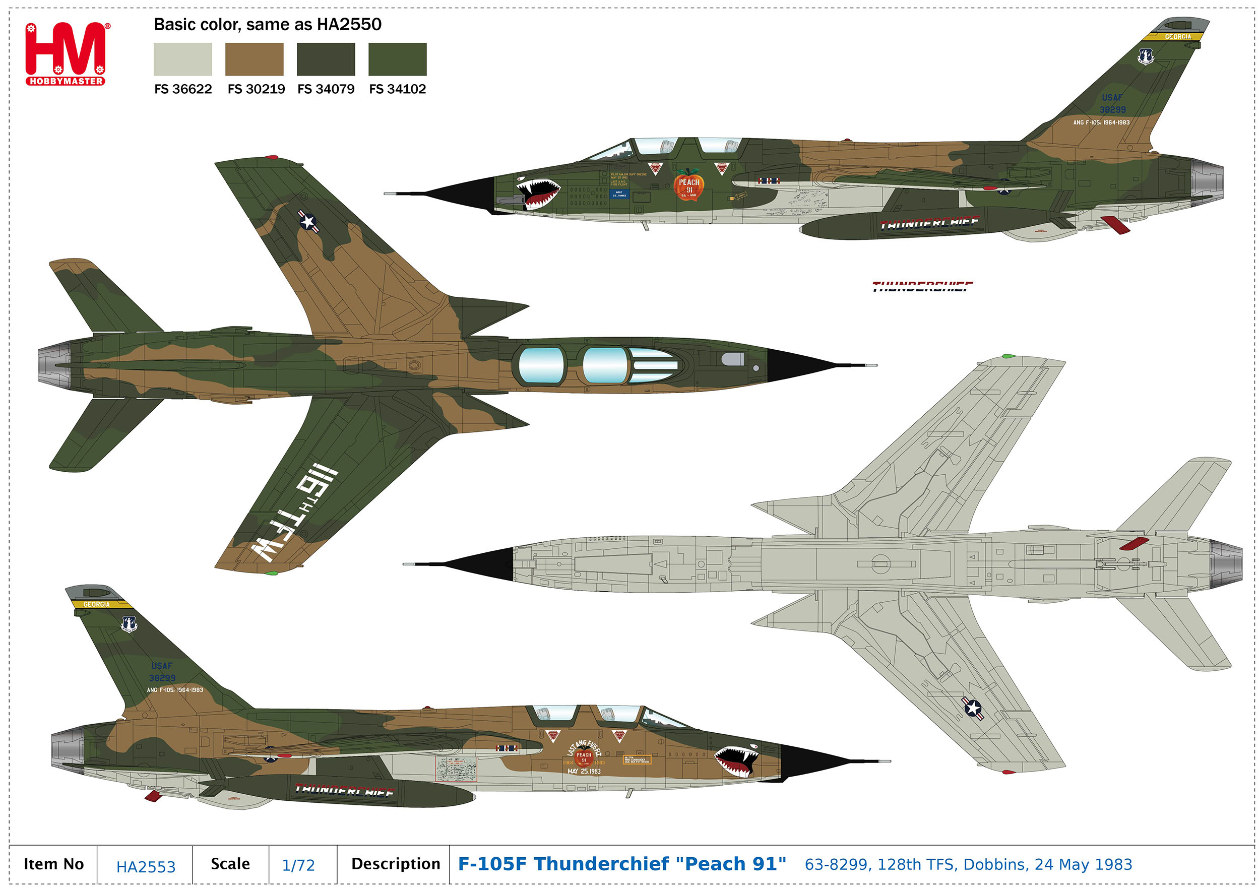 F-105F Thunderchief "Peach 91" 63-8299, 128th TFS, Dobbins, 24 May 1983